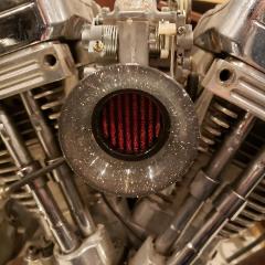 | "AIR GRABBER" velocity stacks, filtered, available in chrome, black powder coat or raw finish . FITS all H-Ds, all years '84 & up, carb or fuel injection, Mikuni & S&S with proper breather/ support bracket available separately. |